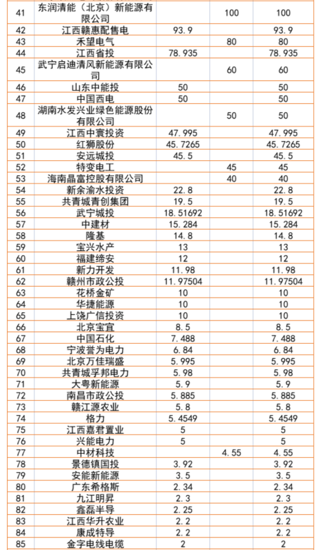 在屋頂光伏類別中,國家能源集團171MW,國家電投89.74MW,華能84.8MW進入TOP3。水面光伏類別中則由修水鳳寧建設(shè)和國陽電力領(lǐng)銜。
