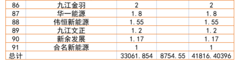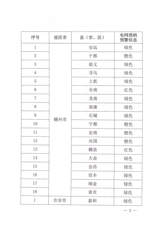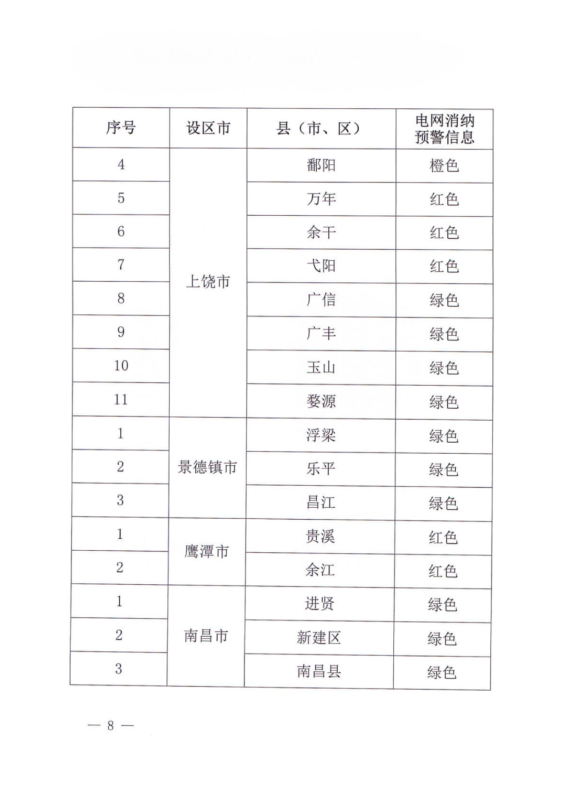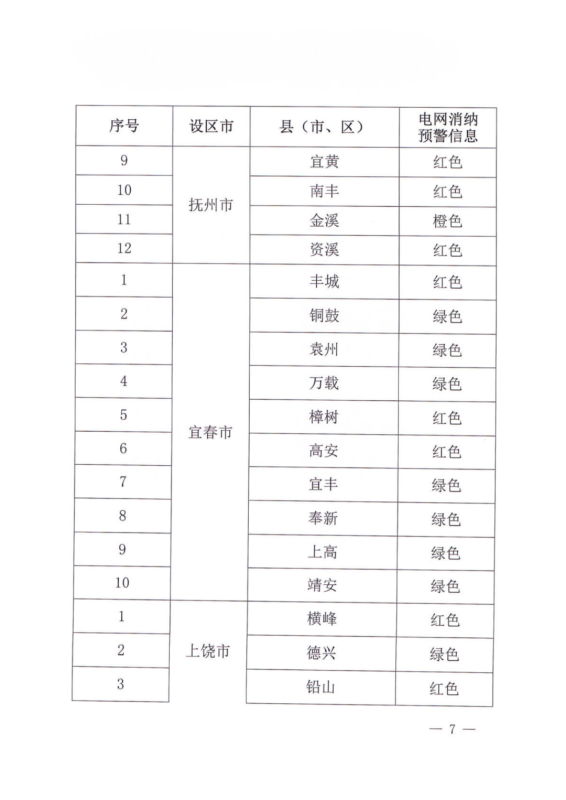 文件指出,由于新能源可開發(fā)容量呈現(xiàn)飽和狀態(tài),故給出部分市縣電網(wǎng)新能源可開放容量表。江西的94個縣市區(qū)中,已經(jīng)有27個電網(wǎng)消納預(yù)警信息為紅色,12個為橙色。