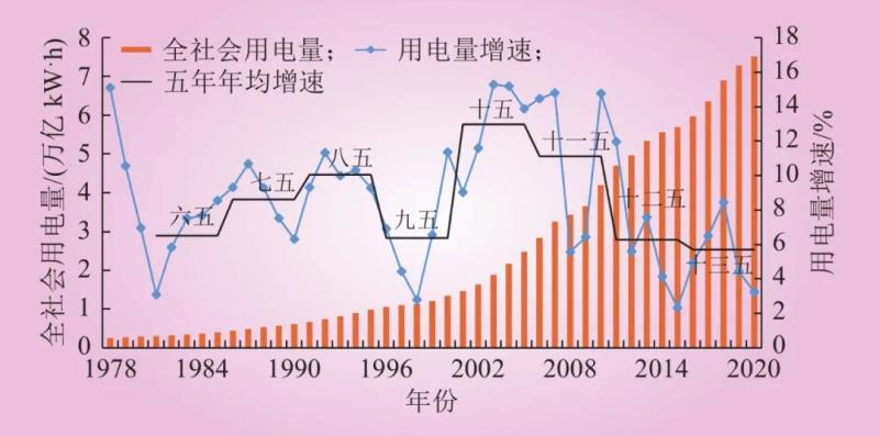 圖1 1978年以來(lái)中國(guó)全社會(huì)用電量及增速