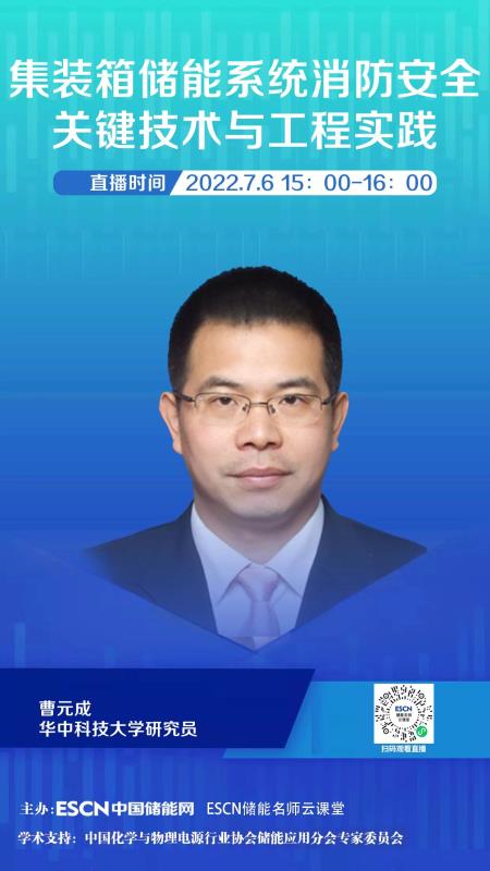 中國儲能網(wǎng)訊:7月6日下午15:00-16:00,中國儲能網(wǎng)邀請華中科技大學(xué)電氣與電子工程學(xué)院電力系、強電磁工程與新技術(shù)國家重點實驗室研究員,博士生導(dǎo)師曹元成教授做客“ESCN儲能名師云課堂”(在線直播),為大家分享《集裝箱儲能系統(tǒng)消防安全關(guān)鍵技術(shù)與工程實踐》主題報告。歡迎業(yè)界同仁在線學(xué)習(xí)與交流。