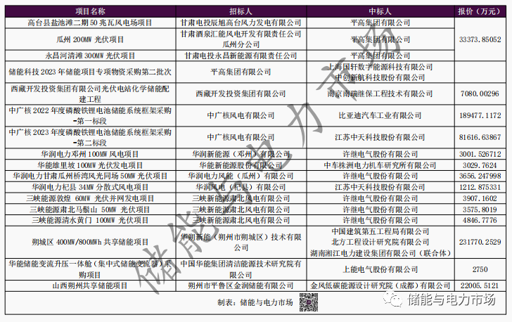 上述17個中標結(jié)果中共包括了5個儲能系統(tǒng)采購和11個EPC/PC總承包采購,以及1個儲能變流升壓一體艙采購。