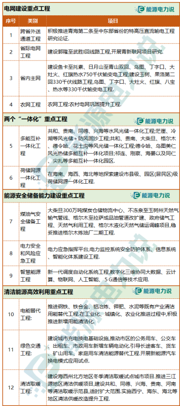 2月28日,青海省人民政府發(fā)布《青海省“十四五”能源發(fā)展規(guī)劃》。重點項目涉及:新能源發(fā)電重點園區(qū)(基地)、水電重點工程、電力調(diào)峰資源重點工程、電網(wǎng)建設(shè)重點工程、兩個“一體化”重點工程、能源安全儲備能力建設(shè)重點工程、清潔能源高效利用重點工程等。