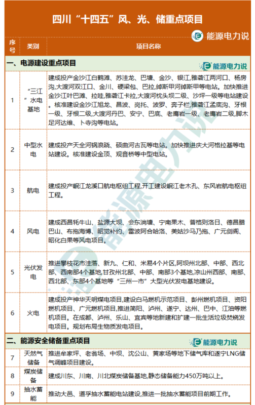 在各省“十四五”規(guī)劃文件中,也明確了風(fēng)、光、儲的重點/重大項目名單。