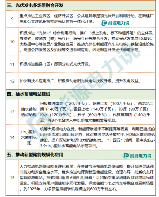 6月1日,山西省能源局發(fā)布《山西省可再生能源發(fā)展“十四五”規(guī)劃環(huán)境影響報告書(征求意見稿)》。規(guī)劃明確了風(fēng)光基地、分布式風(fēng)光項目、光伏多場景融合開發(fā)、抽水蓄能電站、新型儲能等方面的重點項目及工作方向。