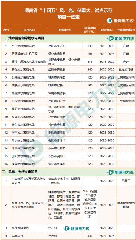 “十四五”期間重點項目有,抽水蓄能項目16個,其中在建3個,完成可研1個,完成預(yù)可研4個,計劃中8個;在風(fēng)、光項目方面,包括生態(tài)治理100萬千瓦光伏發(fā)電項目、整縣(市、區(qū))屋頂分布式光伏開發(fā)試點項目等。