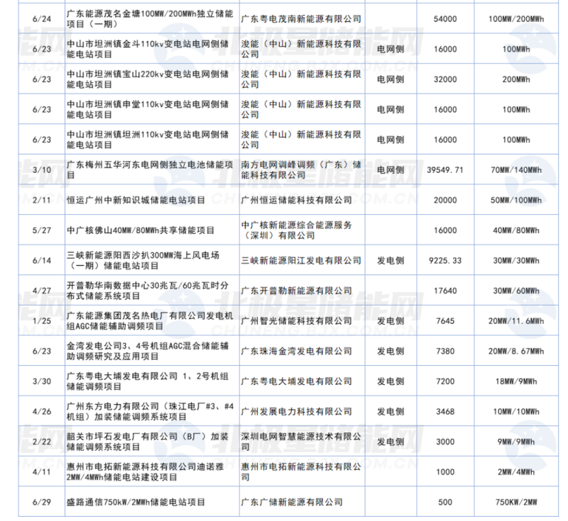 其中寧德時代項目規(guī)模最大,2個項目儲能規(guī)模達1300.2MW/2600.4MWh,中廣核緊隨其后,2個項目儲能規(guī)模達1040MW/2080MWh,據(jù)了解中廣核1GW/2GWh陸豐電化學(xué)儲能電站已是中廣核在廣東投建的第三個GW儲能項目。