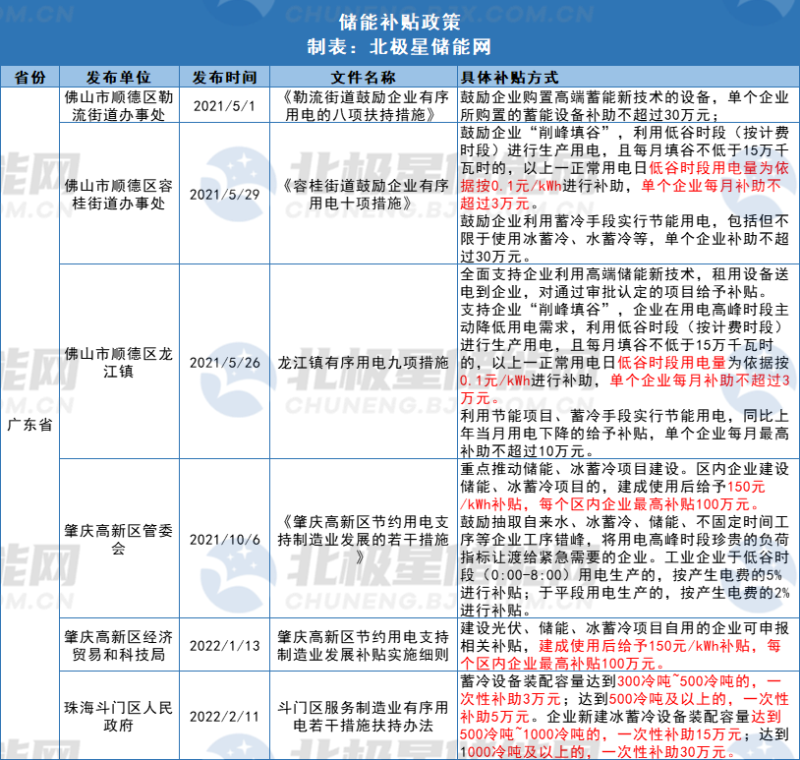 此前,廣東省各地方政府根據(jù)自身發(fā)展的需求,在有序用電政策中對儲能、冰蓄提出了相應(yīng)的補貼,促進儲能在電網(wǎng)供電不足或其他特殊情況時可以作為備用電源,補充電力供應(yīng)。