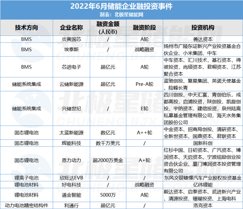 中國儲能網(wǎng)訊:2022年6月,共發(fā)生12起融投資事件,其中4起融資事件金額超億元。