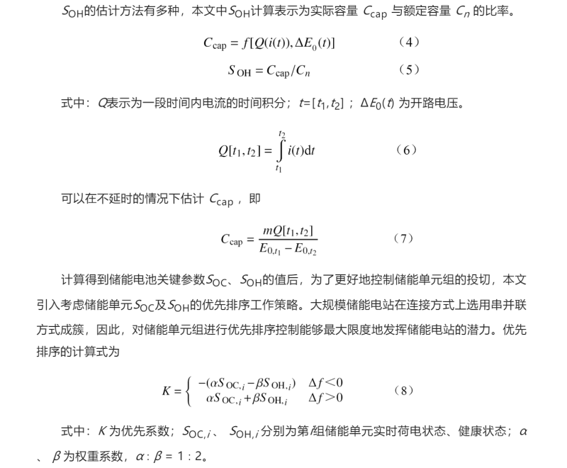 大規(guī)模儲能電站的儲能單元分為若干組,分別經(jīng)由PCS并聯(lián),在實(shí)現(xiàn)調(diào)頻效果的同時(shí)也應(yīng)考慮電池儲能的經(jīng)濟(jì)安全性,為此,本文在對SOC、SOH估計(jì)的情況下,進(jìn)而對各個(gè)儲能單元組的動(dòng)作優(yōu)先順序進(jìn)行分級排序,按照確定的優(yōu)先順序選擇儲能單元組投入工作。
