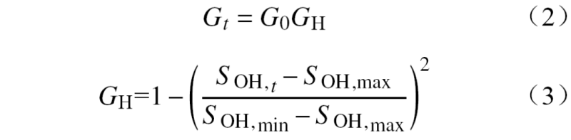 式中:G0 為固定慣性系數(shù);GH 為關(guān)于SOH的健康因子;SOH,t 為電池t時(shí)刻健康狀態(tài);SOH,max 和 SOH,min 為電池健康狀態(tài)上下限,分別為1.0, 0.8。