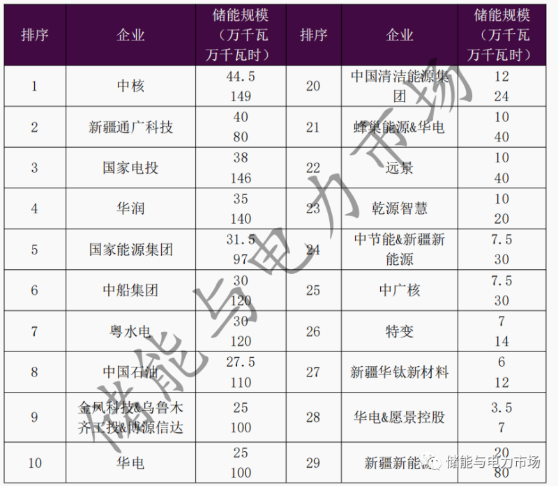 第二批市場(chǎng)化項(xiàng)目?jī)?chǔ)能配置情況