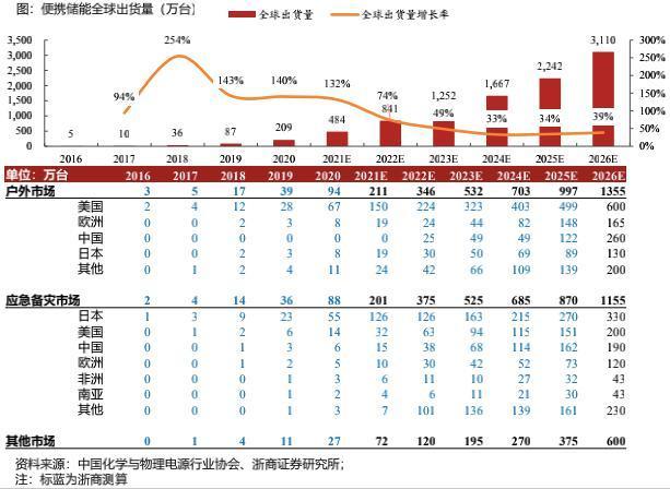 1.1 移動(dòng)儲(chǔ)能:便攜儲(chǔ)能迅猛發(fā)展,家庭儲(chǔ)能(應(yīng)急)蓄勢(shì)待發(fā)