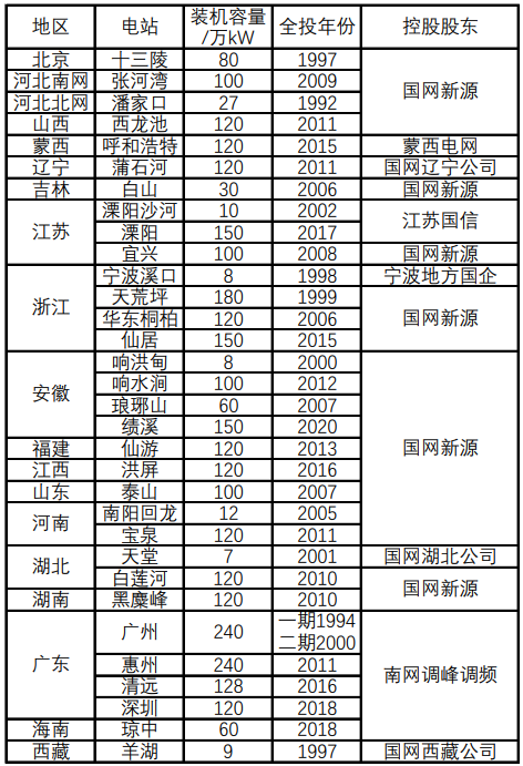 快速發(fā)展階段以成立抽水蓄能專業(yè)運(yùn)營公司,即國家電網(wǎng)公司成立國網(wǎng)新源控股有限公司,南方電網(wǎng)公司成立調(diào)峰調(diào)頻發(fā)電公司為標(biāo)志。這2家發(fā)電公司專門建設(shè)、運(yùn)營抽水蓄能電站,為電網(wǎng)提供調(diào)峰、調(diào)頻、調(diào)相等輔助服務(wù)。