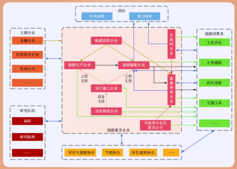 涉足綜合能源服務的市場主體中,綜合能源服務企業(yè)集團,將作為龍頭企業(yè)引領產業(yè)發(fā)展,同時也為產業(yè)的開放、規(guī)范發(fā)展帶來需要探究的課題。此外,跨國能源公司看好我國經濟和綜合能源服務產業(yè)發(fā)展,開始嘗試進入綜合能源服務市場;中小企業(yè)在細分業(yè)務領域積極探索新業(yè)態(tài)、新模式;各類市場主體為綜合能源服務市場注入新活力。