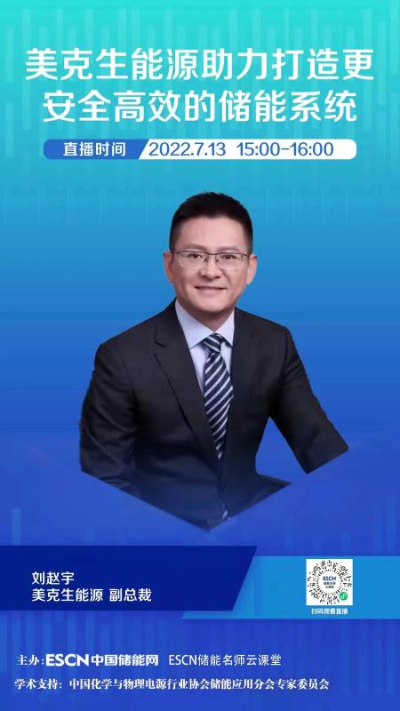 7月13日下午15:00-16:00,中國儲能網(wǎng)邀請美克生能源副總裁劉趙宇做客“ESCN儲能名師云課堂”(在線直播),為大家分享《打造更安全高效的儲能系統(tǒng)》主題報告。歡迎業(yè)界同仁在線學(xué)習(xí)與交流。
