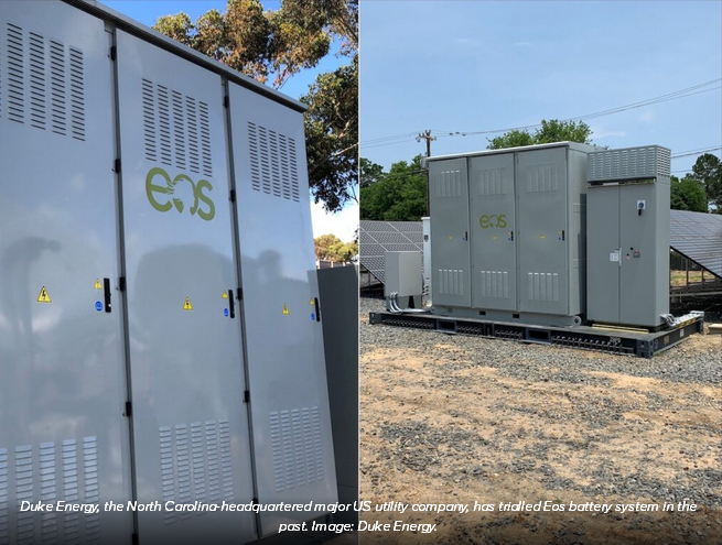 杜克能源公司曾試用過Eos電池儲(chǔ)能系統(tǒng)