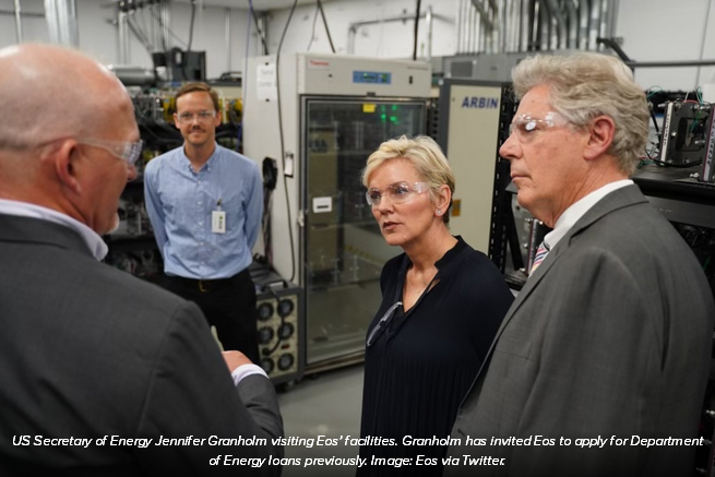 美國能源部長Jennifer Granholm參觀Eos公司的生產(chǎn)設(shè)施