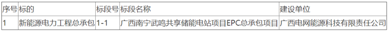 中國儲能網(wǎng)訊:廣西電網(wǎng)能源科技有限責(zé)任公司廣西南寧武鳴共享儲能電站項(xiàng)目EPC總承包公開招標(biāo)采購項(xiàng)目招標(biāo)公告