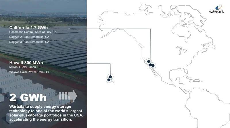 該投資組合包括 Daggett 2 和 Daggett 3 項目,它們共同代表了加利福尼亞州最大的共址光伏加儲能設(shè)施之一,太陽能光伏發(fā)電容量為 482 MWac,儲能容量為 275 MWac / 1.1 GWh。Daggett 項目位于加利福尼亞州的圣貝納迪諾,毗鄰一座退役的煤炭和天然氣工廠。交流耦合儲能系統(tǒng)將在日益動蕩的高峰期提供可再生能源,并幫助該州實現(xiàn)到 2045 年實現(xiàn) 100% 無碳電力的目標。Daggett 3 的訂單已于 2021 年第三季度預訂給瓦錫蘭的訂單,而Daggett 2 的訂單已于 2021 年第四季度預訂。這兩個項目已開始施工,預計完工日期為 2023 年。
