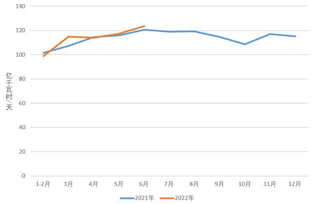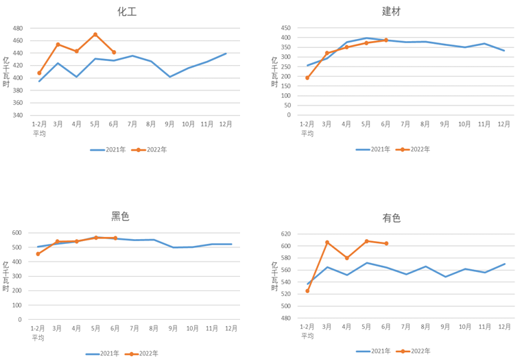 6月份,化工行業(yè)用電量465億千瓦時,同比增長5.3%;建材行業(yè)用電量363億千瓦時,同比下降6.4%;黑色金屬冶煉行業(yè)用電量537億千瓦時,同比下降4.7%;有色金屬冶煉行業(yè)用電量630億千瓦時,同比增長4.3%。