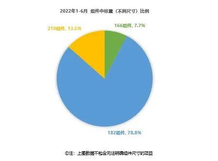依據(jù)上半年中標(可明確組件尺寸)數(shù)據(jù)統(tǒng)計,166組件市場份額持續(xù)走低,僅占比整體規(guī)模的7.7%,逐步被182組件替代,而210組件的市場份額增長遲緩,13.5%的市場份額占比遠不及行業(yè)機構(gòu)的年初預期。182組件78.8%的市占率顯示出強勁的市場表現(xiàn)力,在整體規(guī)模持續(xù)增長、央國企產(chǎn)品選型偏好等多重利好因素促動下,相信182組件下半年依然會有一份亮眼的成績單。