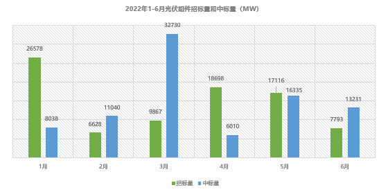 根據(jù)國家能源局統(tǒng)計數(shù)據(jù)顯示,今年1-5月國內(nèi)新增光伏裝機容量為23.71GW,同比增長139%;今年1-6月光伏組件招標量創(chuàng)紀錄地達到86.7GW(不含2021年12月招標項目),已接近2021年全年招標量的兩倍,同時中標量也達到了87.5GW。鑒于近期多個省份已陸續(xù)批復新一批項目指標,及第二批大型風光基地項目的建設(shè)工作已啟動,預計下半年光伏市場需求仍將保持整體上漲的態(tài)勢。