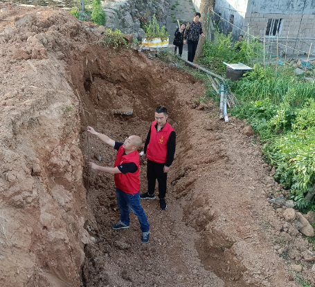 錢志剛(左一)和村兩委走訪村民,幫助村民解決需求。