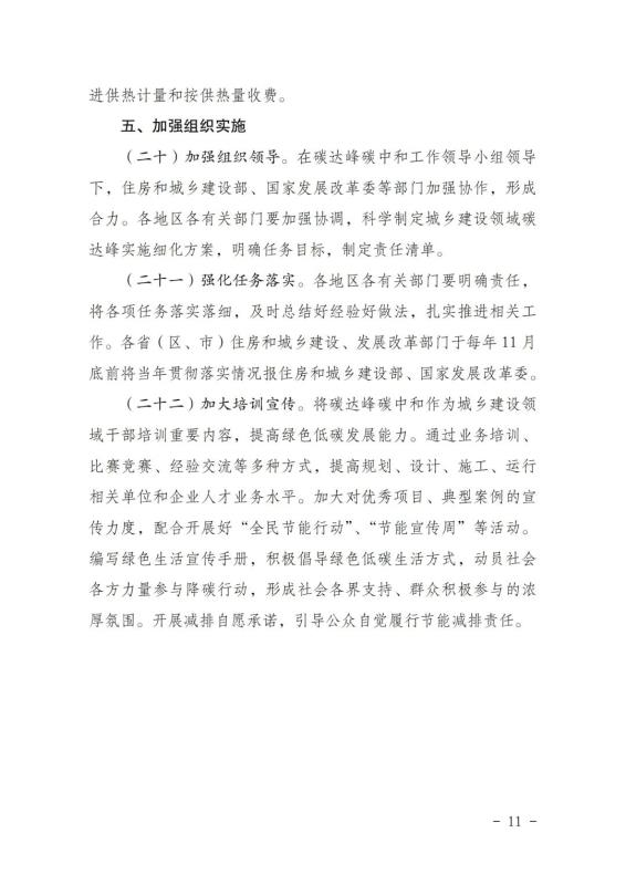 《城鄉(xiāng)建設(shè)領(lǐng)域碳達峰實施方案》已經(jīng)碳達峰碳中和工作領(lǐng)導(dǎo)小組審議通過,現(xiàn)印發(fā)給你們,請認(rèn)真貫徹落實。