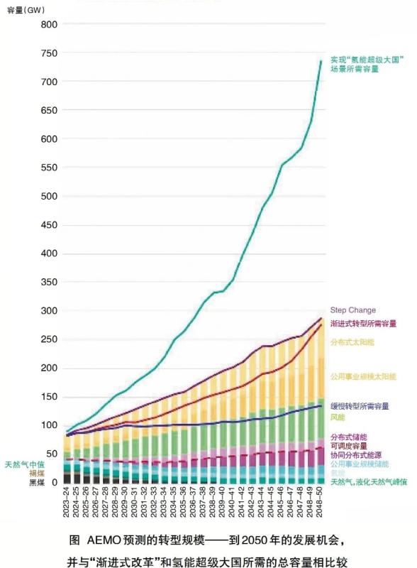 根據(jù)該方案,隨著交通、供暖、烹飪和工業(yè)過程的電氣化,以及目前60%的煤炭發(fā)電到2030年退出,到2050年電網(wǎng)的年用電量將增加一倍。為了保持安全、可靠和可負(fù)擔(dān)的電力供應(yīng),澳大利亞的電力投資規(guī)模中,風(fēng)能和太陽(yáng)能容量將增加9倍,基礎(chǔ)設(shè)施投資將增加3倍(可調(diào)度的存儲(chǔ)、水力和燃?xì)獍l(fā)電),分布式太陽(yáng)能將增加近5倍。到2050年,電力需求幾乎翻倍,而目前構(gòu)成電網(wǎng)支柱的燃煤電廠的退役速度比宣布的要快,到2020年,60%的產(chǎn)能將被淘汰。