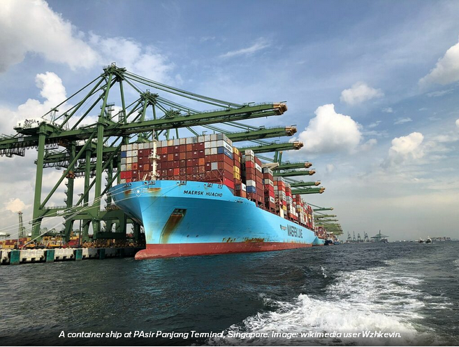 停泊在新加坡帕西爾班讓碼頭的一艘集裝箱運輸船