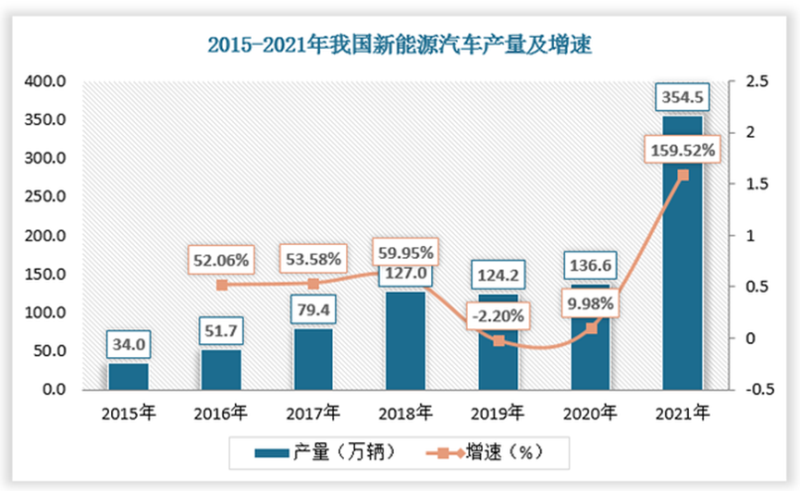2015-2021年我國新能源汽車產(chǎn)量及增速