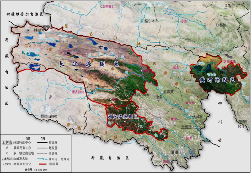 三江源國(guó)家公園衛(wèi)星遙感影像圖(圖源:國(guó)家發(fā)展改革委,三江源國(guó)家公園總體規(guī)劃,2018)