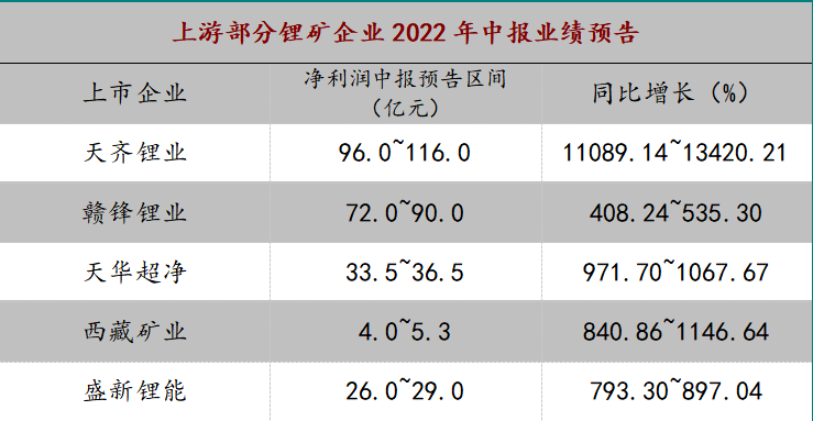 上游原材料價格高位運行之下,鋰礦企業(yè)業(yè)績增速驚人。