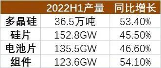 在制造端,今年1至6月份,國內(nèi)多晶硅、硅片、電池和組件產(chǎn)量同比增長均在45%以上。其中,多晶硅和組件產(chǎn)量增幅居前,超過50%。