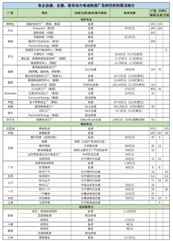 中國(guó)儲(chǔ)能網(wǎng)訊:車企對(duì)造動(dòng)力電池的熱情持續(xù)升溫,不管是自己造,合資造,還是投資造。