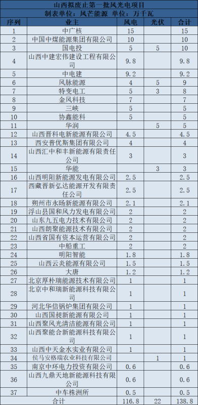 中國(guó)儲(chǔ)能網(wǎng)訊:中國(guó)儲(chǔ)能網(wǎng)訊:7月22日,山西省能源局公示《山西省擬廢止第一批風(fēng)電光伏發(fā)電項(xiàng)目清單》。