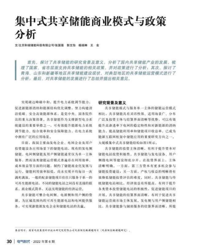 共享儲(chǔ)能的商業(yè)模式和政策分析