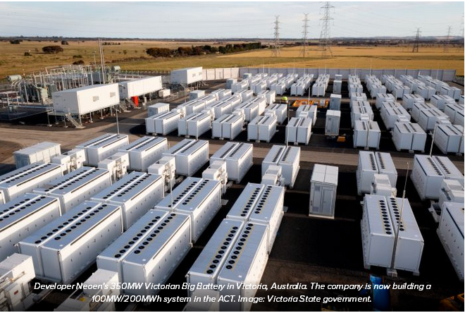 儲(chǔ)能開(kāi)發(fā)商N(yùn)eoen公司在澳大利亞維多利亞州部署的350MW Victorian Big Battery電池儲(chǔ)能系統(tǒng)。該公司正在澳大利亞首都地區(qū)建設(shè)一個(gè)100MW/200MWh電池儲(chǔ)能系統(tǒng)