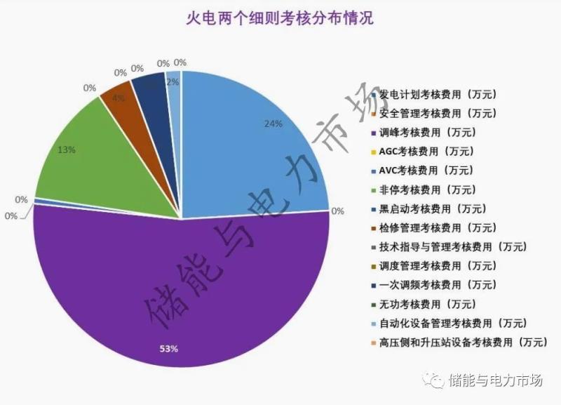 ● 火電機(jī)組兩個(gè)細(xì)則考核費(fèi)用總計(jì)45944萬元,月均考核7657萬元。調(diào)峰、發(fā)電計(jì)劃、非計(jì)劃停運(yùn)三項(xiàng)考核排名前三,考核占比分別為53%,24%,13%。