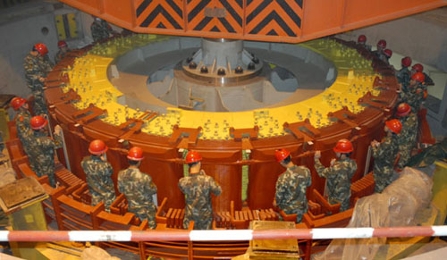 響水澗抽水蓄能電站是目前國(guó)內(nèi)第一臺(tái)擁有自主知識(shí)產(chǎn)權(quán),國(guó)內(nèi)自行研究設(shè)計(jì)、制造、安裝和調(diào)試的抽水蓄能機(jī)組,機(jī)組的投產(chǎn)對(duì)填補(bǔ)我國(guó)抽水蓄能電站技術(shù)新領(lǐng)域空白具有劃時(shí)代意義。機(jī)電安裝工程自2009年9月開(kāi)工建設(shè)以來(lái),承擔(dān)施工任務(wù)的武警水電二總隊(duì)官兵充分發(fā)揚(yáng)“特別能吃苦、特別能戰(zhàn)斗、特別能奉獻(xiàn)”的水電鐵軍精神,精心組織,科學(xué)施工,日夜鏖戰(zhàn),克服了“地下洞群密集,施工交叉作業(yè),設(shè)備缺陷多、處理難”等諸多困難,保證了工程建設(shè)的有序推進(jìn)。2010年7月29日,機(jī)組段結(jié)構(gòu)實(shí)現(xiàn)封頂;2011年7月28日,500KV倒送電成功;2011年12月11日,首臺(tái)機(jī)組正式投產(chǎn)發(fā)電;2012年4月26日,2號(hào)機(jī)組正式并網(wǎng)發(fā)電。