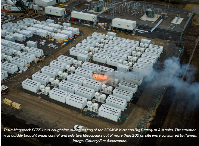 在澳大利亞部署部署的Victorian Big Battery電池儲能系統(tǒng)起火,火勢很快得到控制,現(xiàn)場部署的200多個Megapack電池儲能系統(tǒng)只有兩個被大火燒毀。