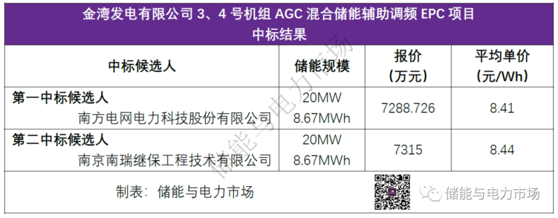 中國儲能網(wǎng)訊:近日金灣發(fā)電有限公司3、4號機組AGC混合儲能輔助調(diào)頻項目EPC中標結(jié)果發(fā)布,南方電網(wǎng)電力科技股份有限公司以7288.726萬元的總報價成為第一中標候選人。