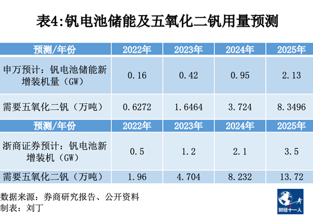 基于這樣的預(yù)測,申銀萬國、光大證券、浙商證券認(rèn)為:2025年前后,中國釩電池儲能年度新增裝機(jī)量將達(dá)到2.13GW-3.5GW。