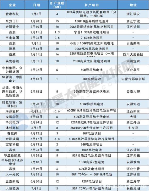 從已明確布局的技術(shù)路線來看,除了從玩具轉(zhuǎn)型到光伏的沐邦高科維持猛進(jìn)勢(shì)頭,宣布投建8GW TOPCON光伏電池項(xiàng)目。太一光伏同時(shí)押注TOPCon、HJT兩種技術(shù)路線,分別規(guī)劃了5GW產(chǎn)能,計(jì)劃先行投建5GW TOPCon電池,竣工后上馬5GW HJT電池。大恒能源投建5GW TOPCon電池組件項(xiàng)目,計(jì)劃于2023年全面投產(chǎn),加速先進(jìn)技術(shù)布局。