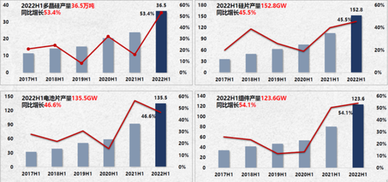2022年上半年我國光伏制造端各環(huán)節(jié)發(fā)展概況