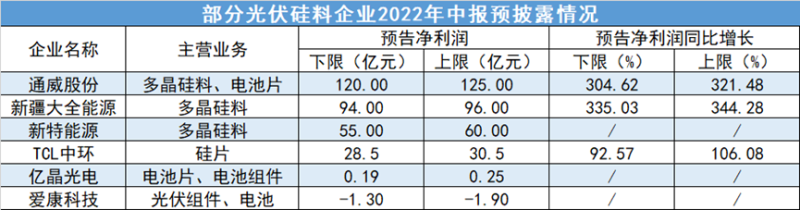 如此高價下,生產(chǎn)硅料的企業(yè)賺得盆滿缽滿。以通威股份為例,今年上半年,公司歸母凈利潤預(yù)計120-125億元,同比增長304.62%-321.48%,平均日賺6630-6906萬元。