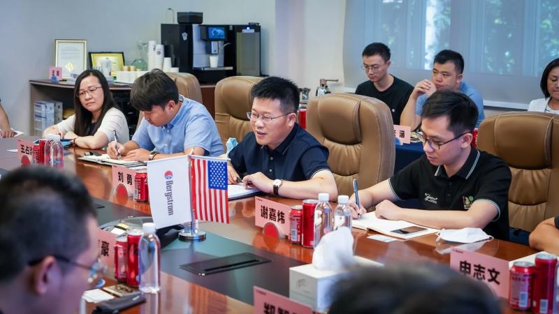 調(diào)研期間,雙方進(jìn)行了交流座談,陳振豪代表公司向?qū)<覀兘榻B了企業(yè)全球背景、溫控系列產(chǎn)品、技術(shù)、市場及服務(wù)能力。并就電池儲能熱管理話題展開了討論和廣泛交流。