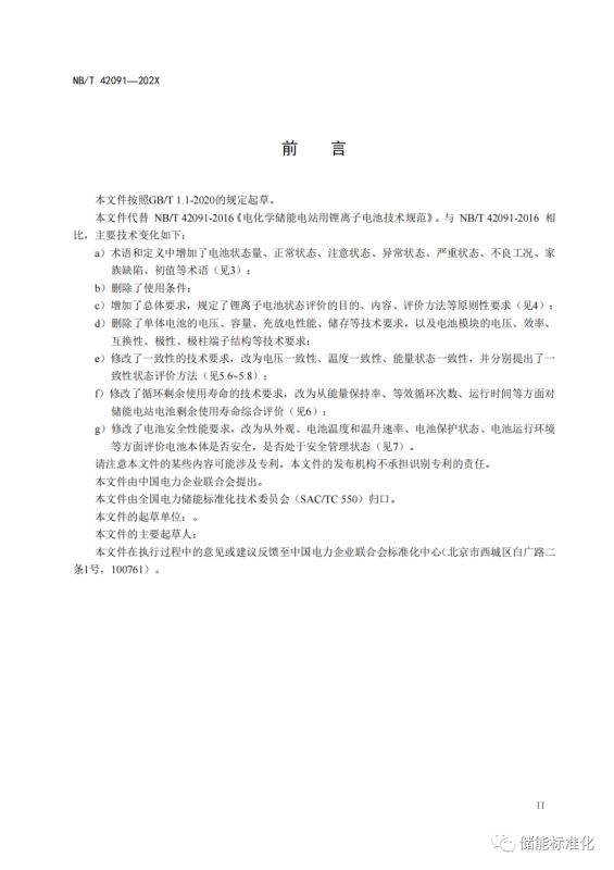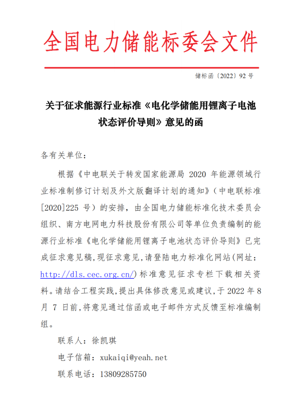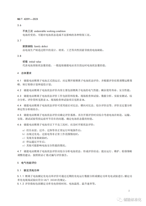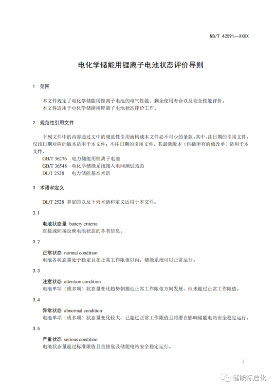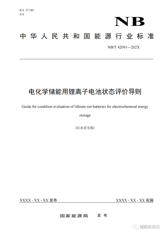 能源行業(yè)標(biāo)準(zhǔn)《電化學(xué)儲能用鋰離子電池狀態(tài)評價導(dǎo)則》征求意見