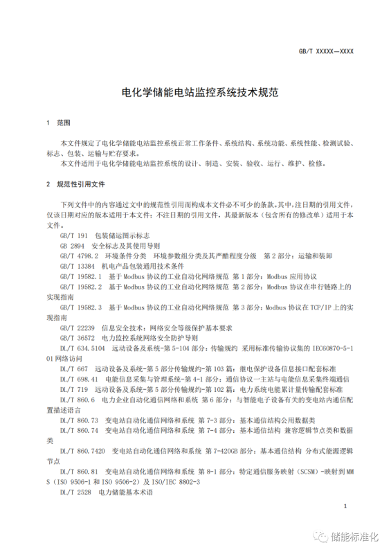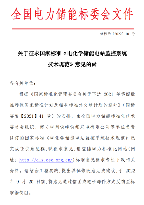 國(guó)家標(biāo)準(zhǔn)《電化學(xué)儲(chǔ)能電站監(jiān)控系統(tǒng)技術(shù)規(guī)范》征求意見