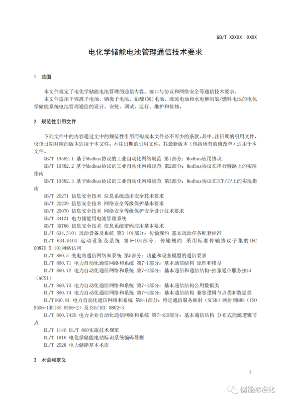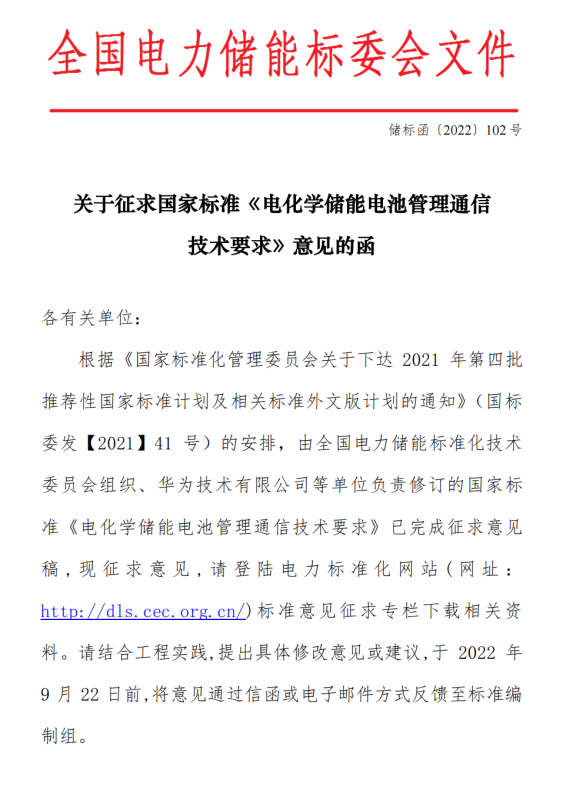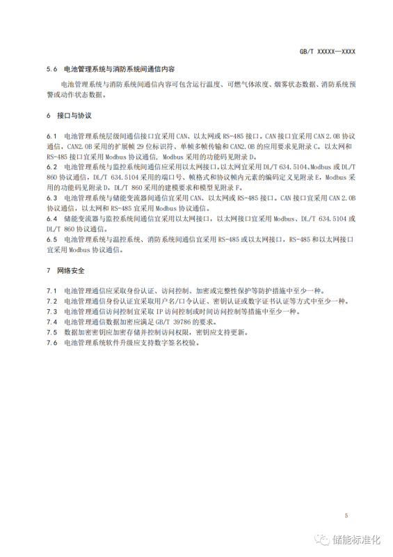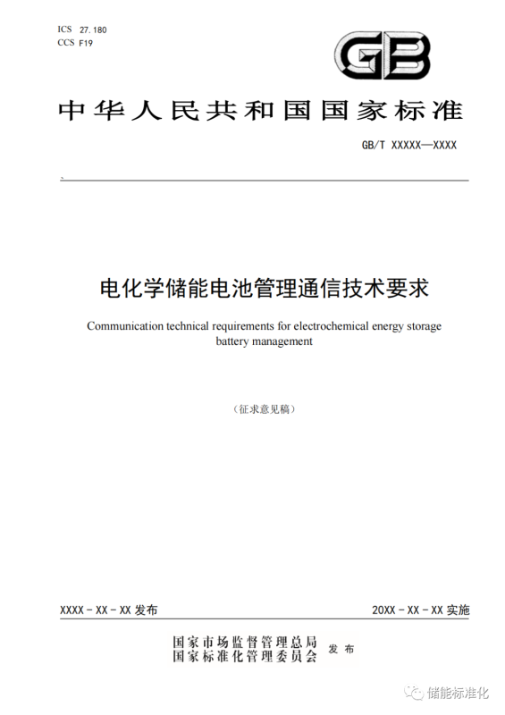 國家標準《電化學儲能電池管理通信技術(shù)要求》征求意見